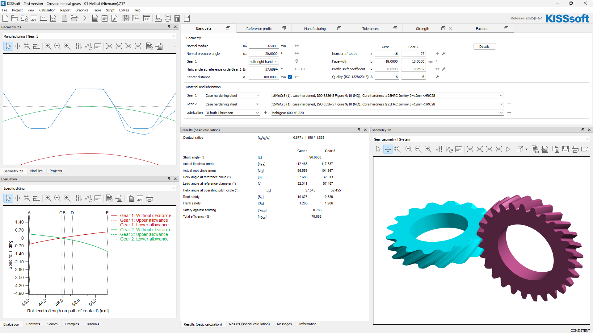 - Calculation of flank, root and scuffing safety factor with single load or load spectrum