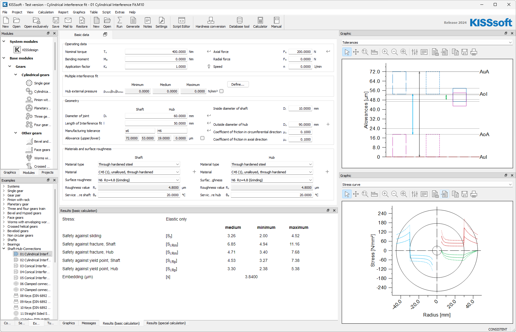 Cylindrical interference fit, conical interference fit with diametral tolerances taken into account